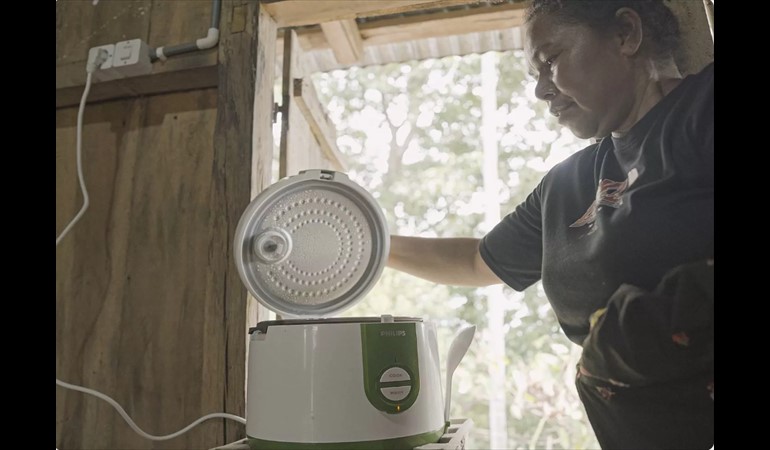 "Sejak nenek moyang kami, kami tidak pernah melihat listrik. Sejak Indonesia merdeka kami belum pernah melihat listrik, sampai hari ini kami sudah merasakan listrik masuk ke Desa kami,” ujarnya.