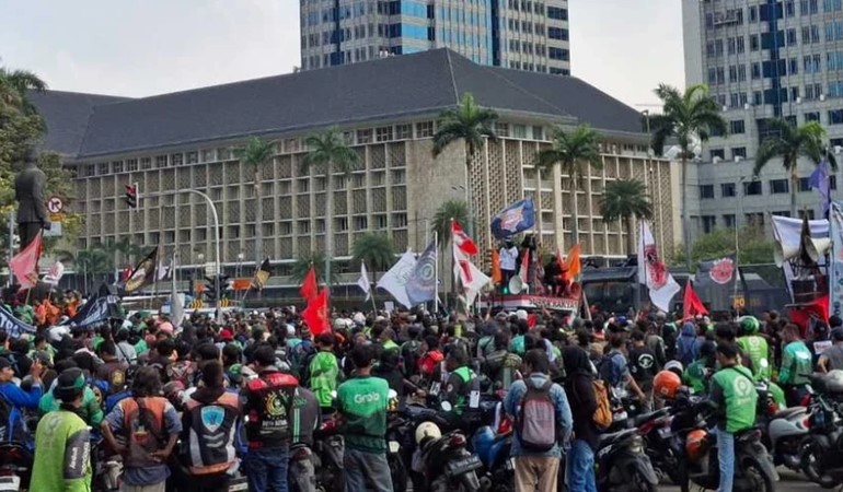 BERITAUP2DATE.COM, Ribuan pengemudi ojek online (ojol) berkumpul di sekitar Patung Kuda, Jakarta Pusat, untuk menyuarakan keresahan mereka terhadap kondisi ekonomi yang semakin sulit dan sistem bagi hasil yang dinilai tidak adil.