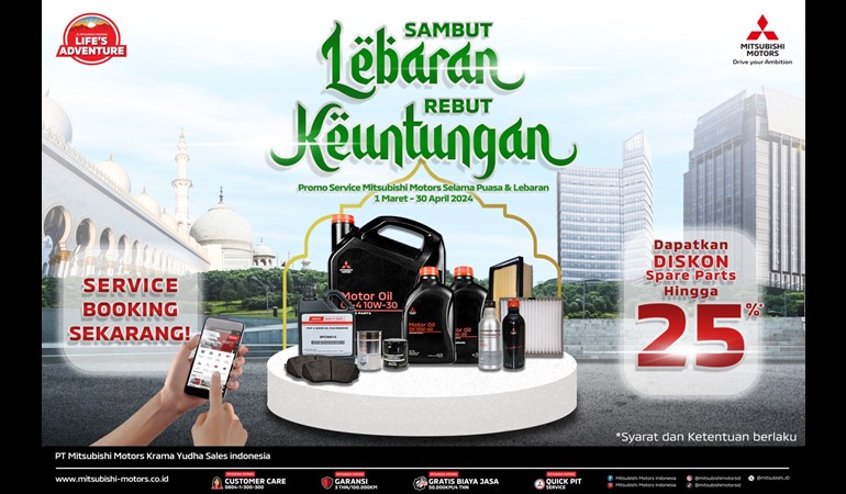 Program spesial yang mencakup diskon untuk beragam suku cadang model kendaraan Mitsubishi Motors di Indonesia hingga 25%. Konsumen pengguna model Mitsubishi Motors dapat memanfaatkan program spesial “Lebaran Campaign” selama periode 1 Maret – 30 April 2024, di diler resmi Mitsubishi Motors seluruh Indonesia cukup dengan melakukan service booking selama periode campaign.